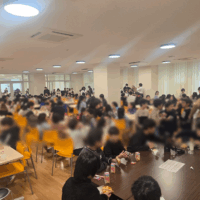 パンとジュースに加えて、おにぎり、魚肉ソーセージ、ゼリー、アルファ化米のわかめご飯、シリアルもあります。子ども達は、それぞれ、好きなものを取ります。お代わりする子どももいます。中学生年代の男子は、山盛りのわかめご飯を食べていました。食 ...