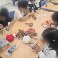 編み物の先生のボランティアが、パンチャーニットの道具と毛糸を持って来てくれました。男子も女子も、毛糸でかわいい花の飾りを作りました。自分で創意工夫して、猫の顔やクリスマスリースを作った子どももいました。手芸はせずに、大学生ボランティア ...