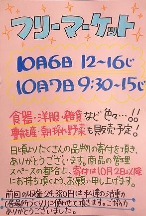 10月6日(金)、7日(土)フリーマーケットです☆