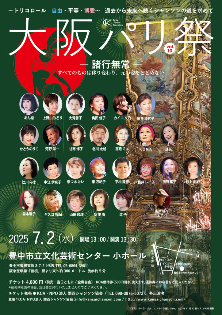 ●主 催:KCA・NPO法人 関西シャンソン協会(06-6336-0201 / info@kansaichanson.com / http://www.kansaichanson.com)