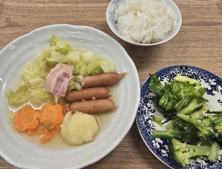 メニューは、ポトフ、ブロッコリーのにんにく・オリーブ油炒め、白菜の塩昆布和えでした。