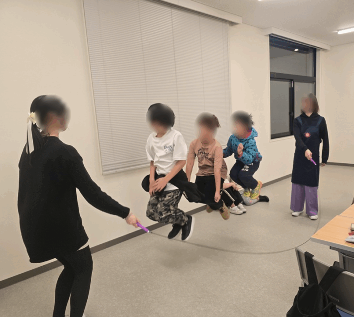 子ども達は、毎回、縄跳びをして飽きません。以前、ぐーてんで開催していた時は、狭いので、ぎゅうぎゅうでしたが、ショコラの部屋は広いので、体を使って遊べます。高校生と大学生のボランティアのお姉さんたちに、縄を回してもらって、跳びました。ボードゲームやレゴで遊んでいる子ども達もいました。外国人のママと子どもも来てくれました。